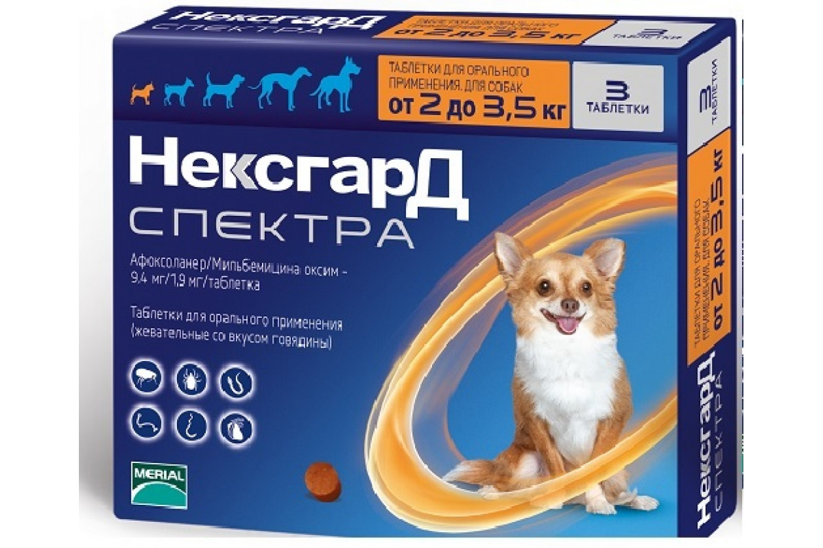 NexGard (Нексгард) SPECTRA жевательная таблетка против блох, клещей, гельминтов для собак весом от 2 до 3,5 кг NexGard Не доступно